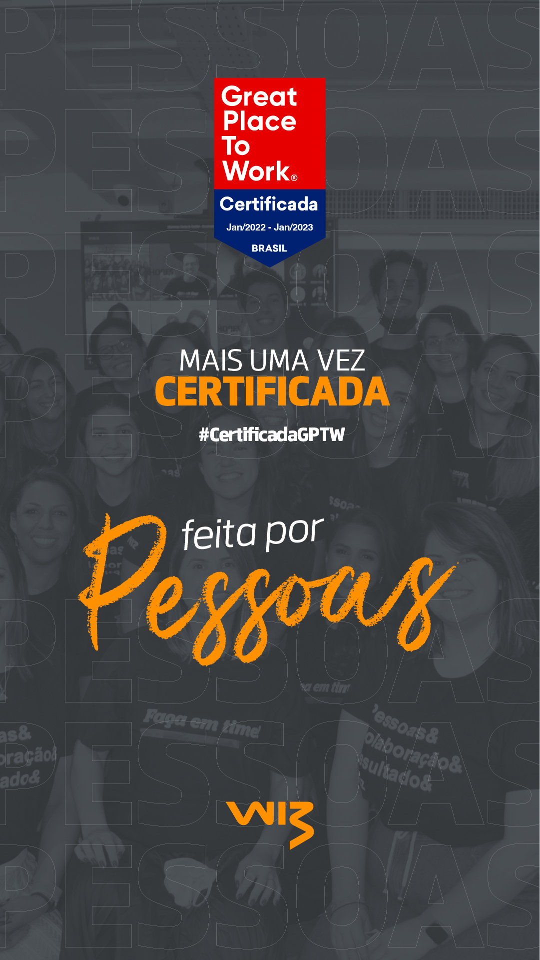 E por falar em orgulho, neste ano, o Orgulho foi o pilar GPTW com maior destaque entre os respondentes da pesquisa e isso diz muito sobre quem somos. É sobre ter orgulho de trabalhar na Wiz e transformar esse orgulho em paixão pelo que faz.