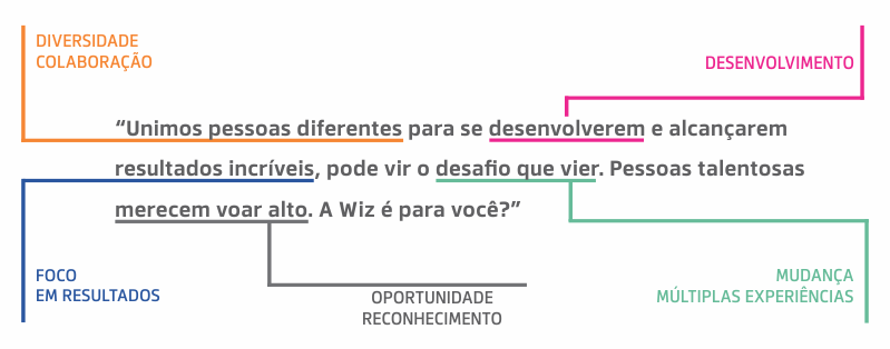 Peço a todos os WIZZERS que comprem esta atitude. Desafiem as regras, desafiem as metodologias, mas, para criar melhores. Criem, em suas unidades, o seu “Jeitão”, mas admirem e apliquem os valores e as atitudes do Grupo Wiz. VAMOS CONSTRUIR NOSSO CONGLOMERADO JUNTOS!